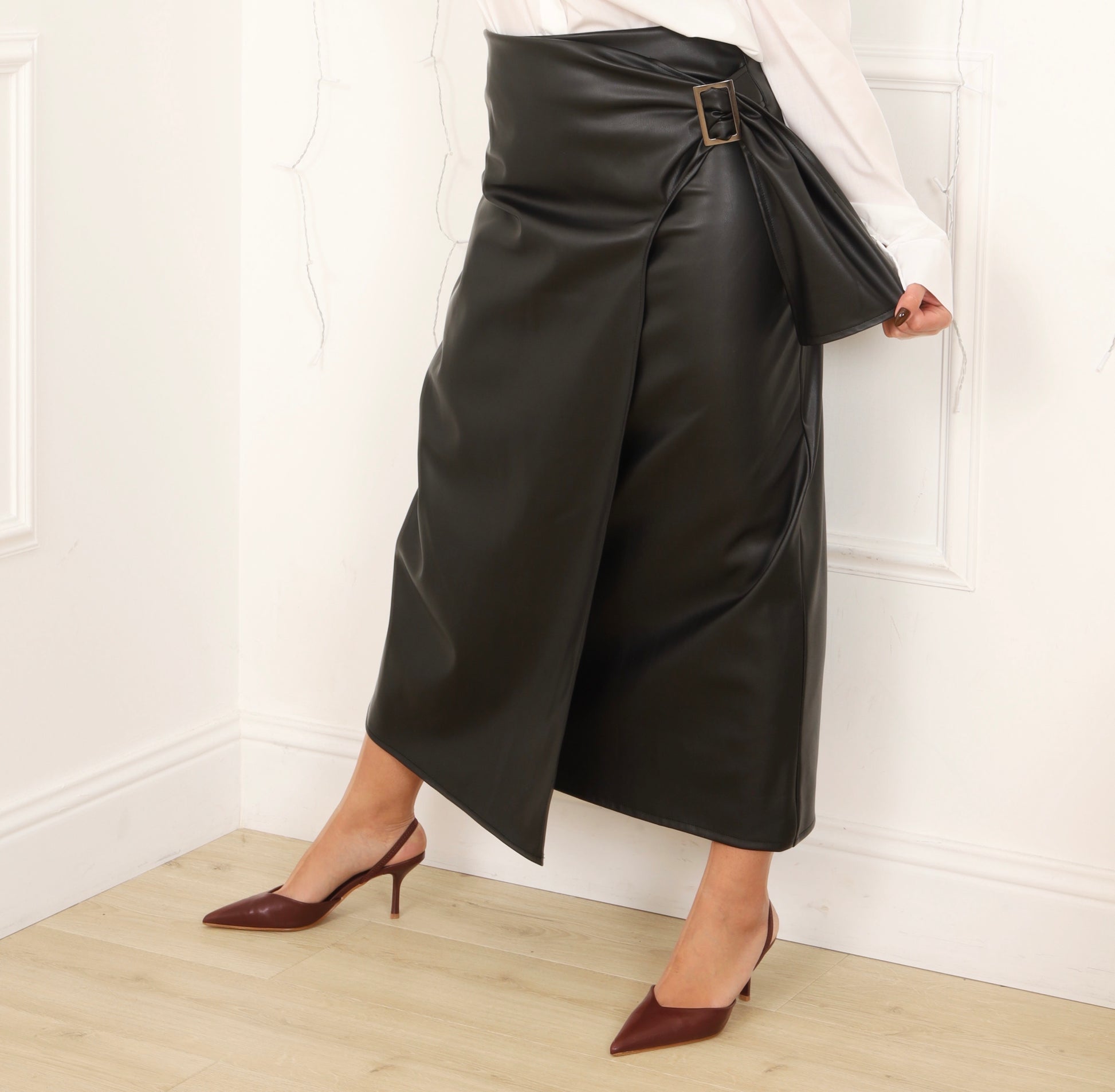 Confectionnée dans un skaï de qualité supérieure (65% polyuréthane, 35% polyester), cette jupe portefeuille offre une texture luxueuse et un tombé impeccable. Son design enveloppant sublime la silhouette tout en assurant un confort optimal.