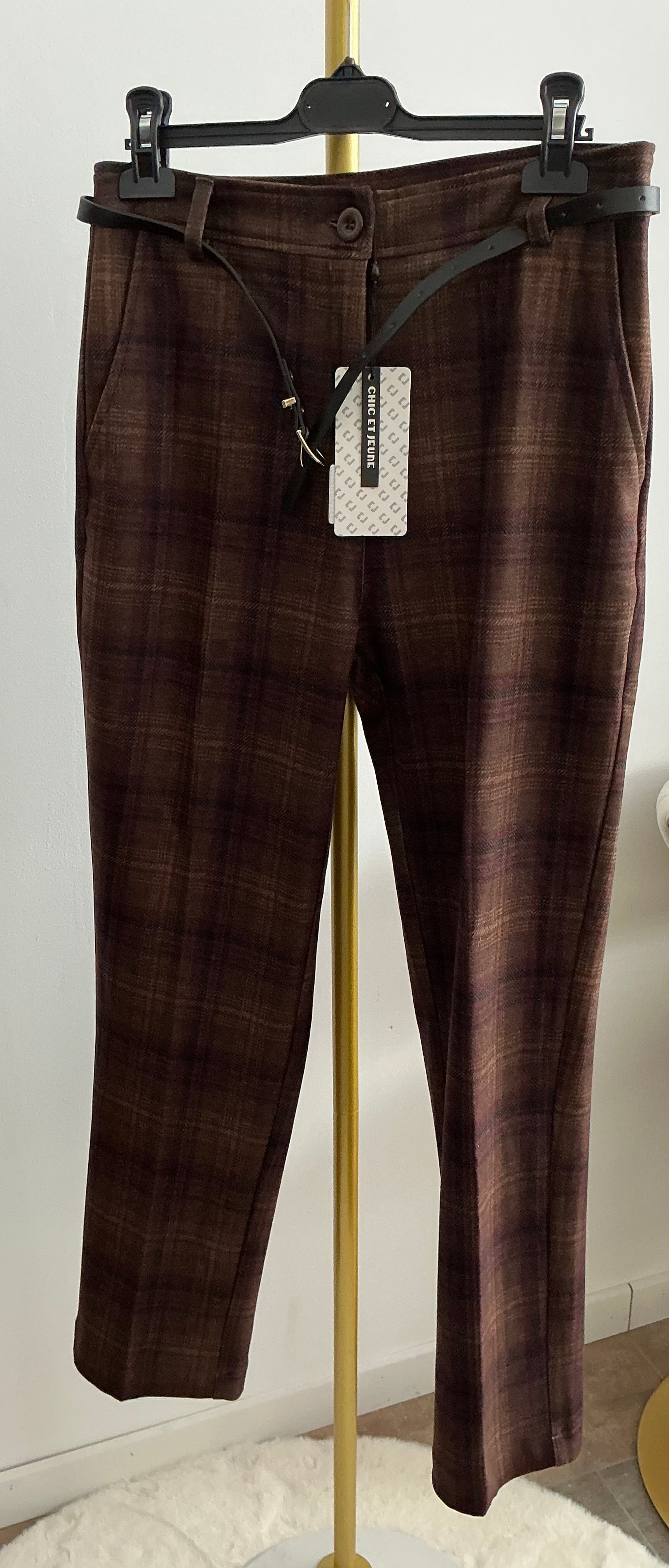 Ce 🍫 pantalon à carreaux marron chocolat vous enveloppe de douceur tout en apportant une touche de caractère à vos tenues d'automne-hiver.