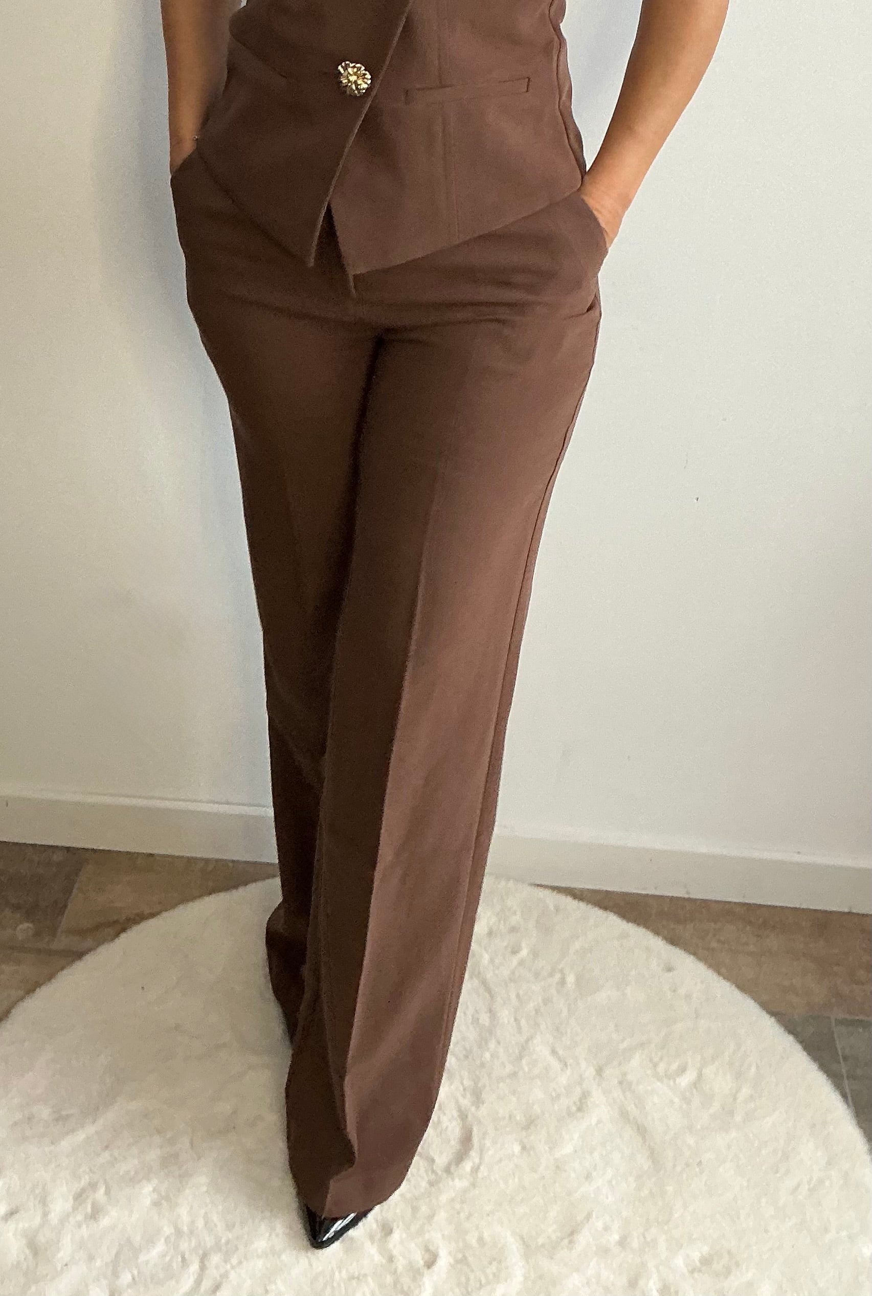 ✨ Découvrez l'élégance intemporelle avec ce superbe pantalon coupe droite dans une magnifique teinte marron chocolat.
